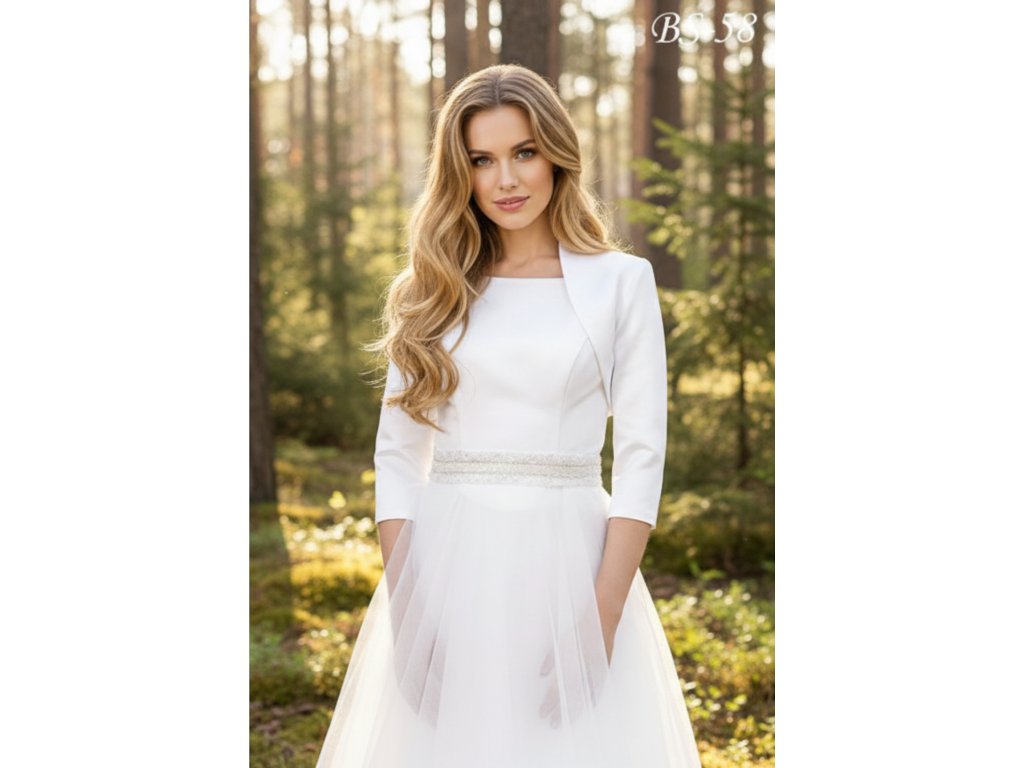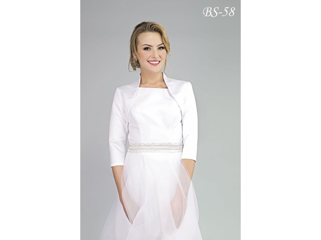 › Svadobné bolerka › Saténové svadobné bolerko s úzkymi rukávmi - biele: BS-58