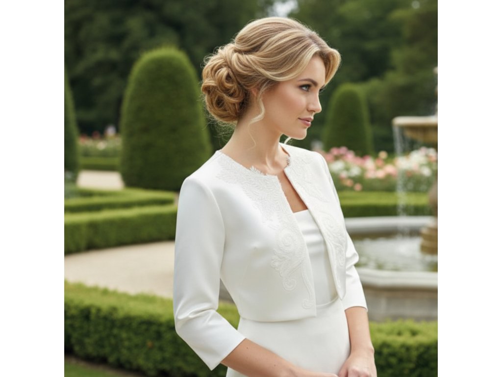› Svadobné bolerka › Saténové svadobné bolerko zdobené čipkou - ivory: BD-324