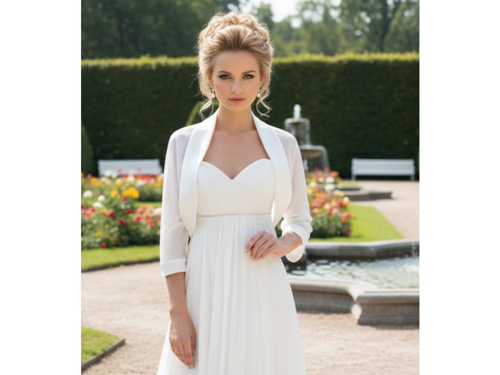 Svadobné bolerko je dostupné vo veľkosti 36/38, 40/42, 44/46 a 48/50.