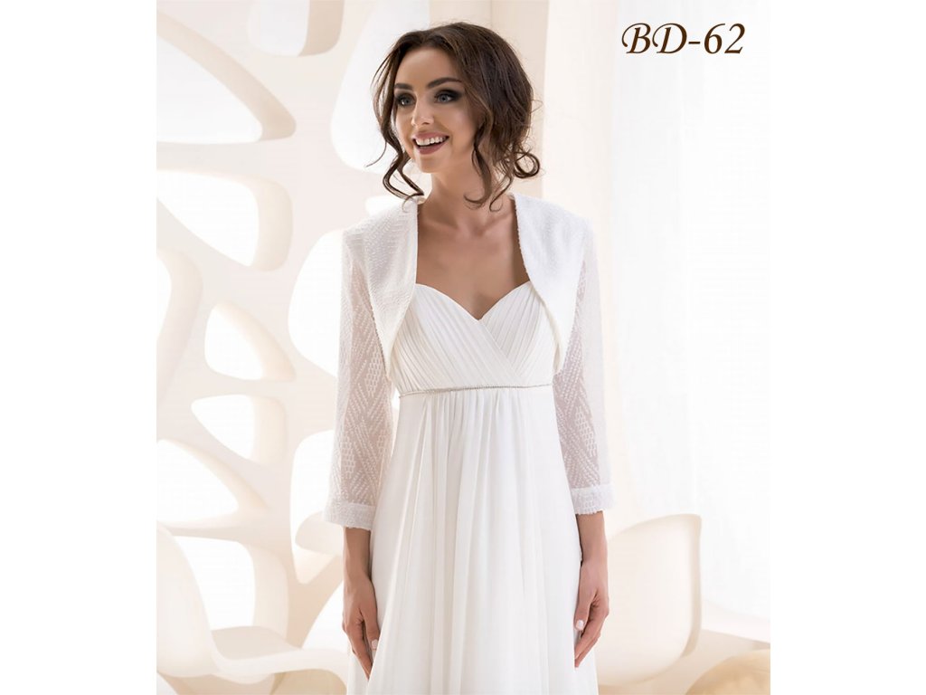 Saténové svadobné bolerko so vzorovanými mušelínovými rukávmi.