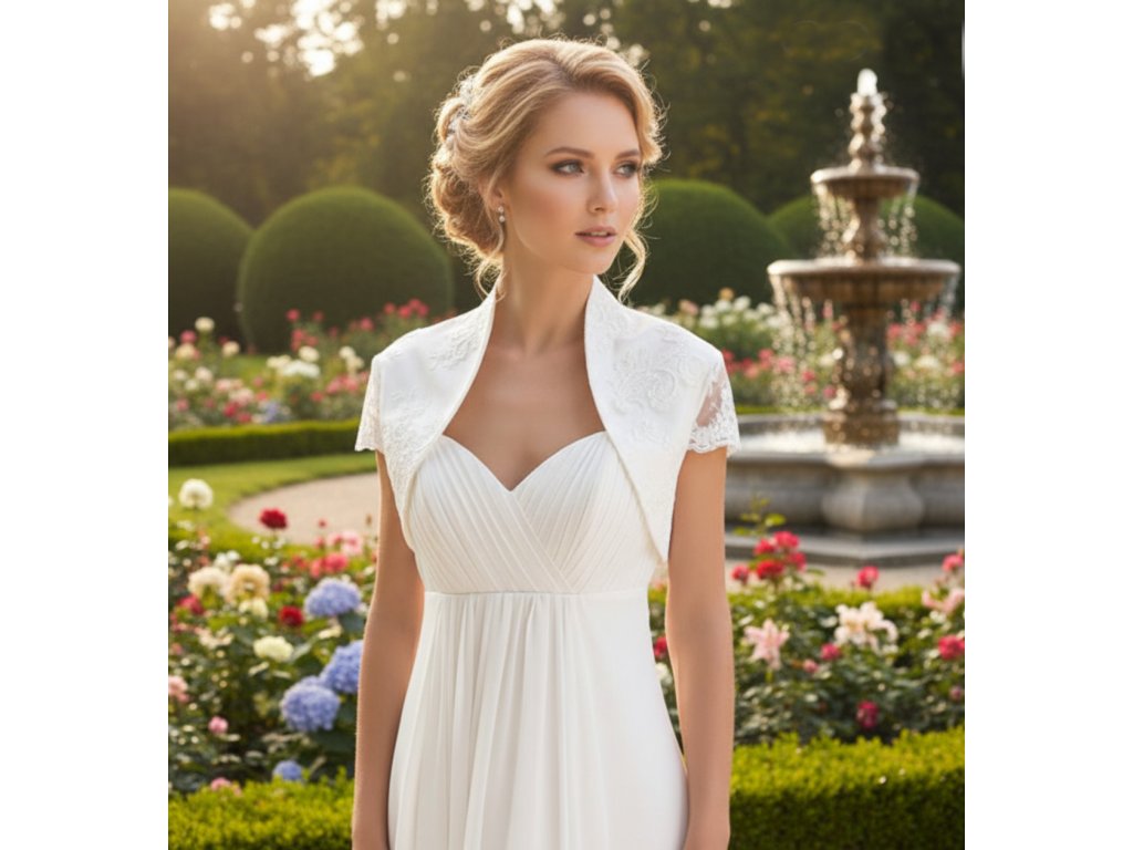 Saténové svadobné bolerko pošité čipkou.
