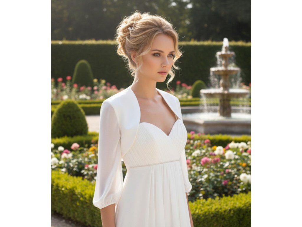 › Svadobné bolerka › Svadobné bolerko s mušelínovými rukávmi - biele: BD-60