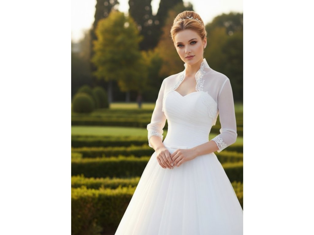 Svadobné bolerko z organzy lemované čipkou.