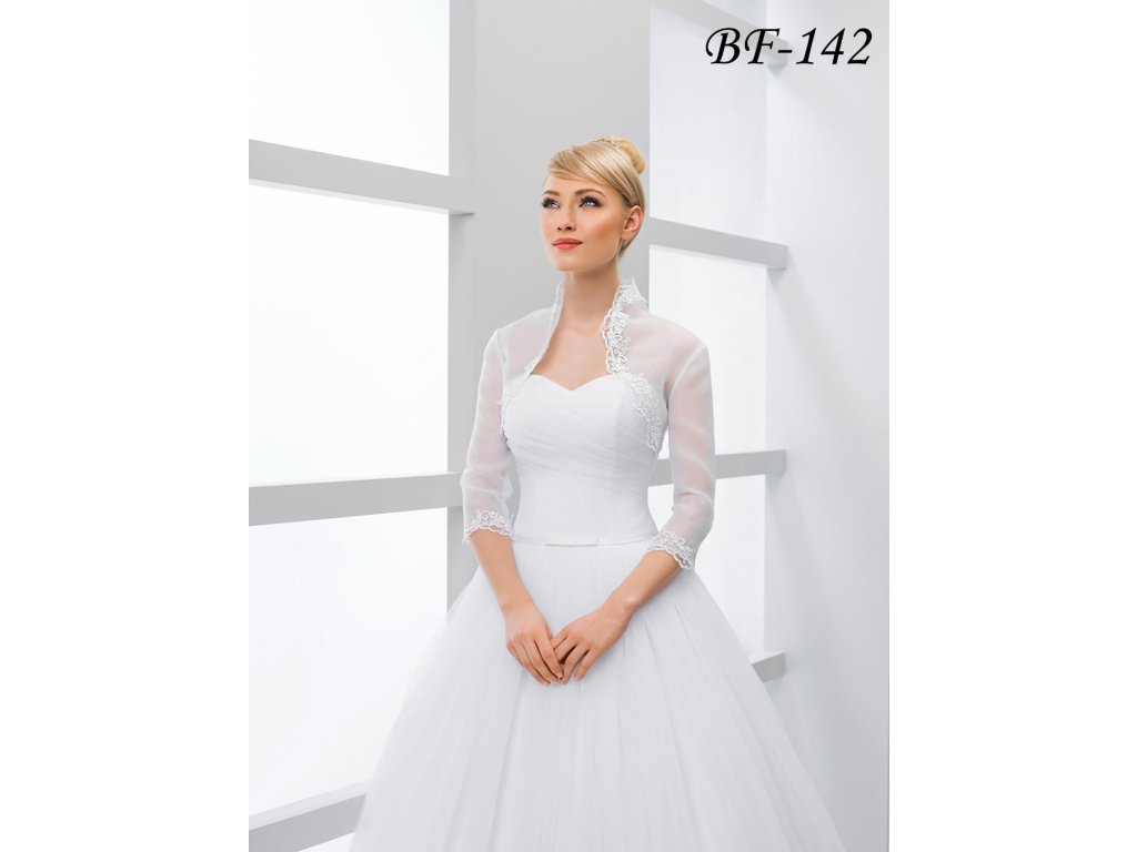 › Svadobné bolerka › Svadobné bolerko z organzy lemované čipkou - biele: BF-142