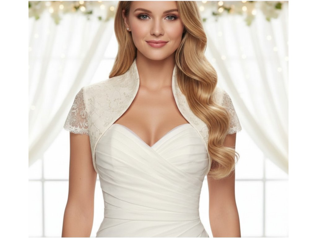 Svadobné saténové bolerko pošité čipkou a flitry.