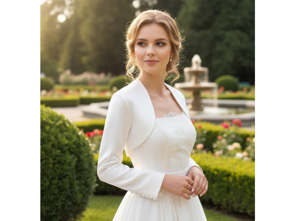 Svadobné saténové bolerko s gombíkmi na rukávoch.