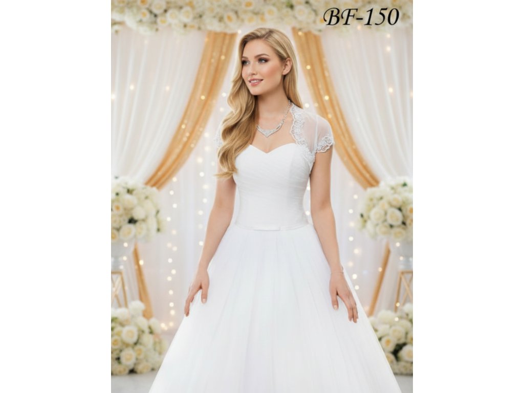 › Svadobné bolerka › Svadobné tylové bolerko s čipkou - biele: BF-150, veľ. S/M