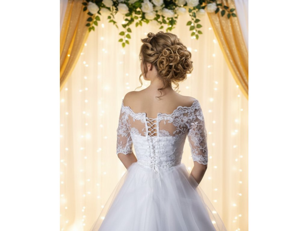› Svadobné bolerka › Svadobný čipkový kabátik - ivory: B-403, veľ. L