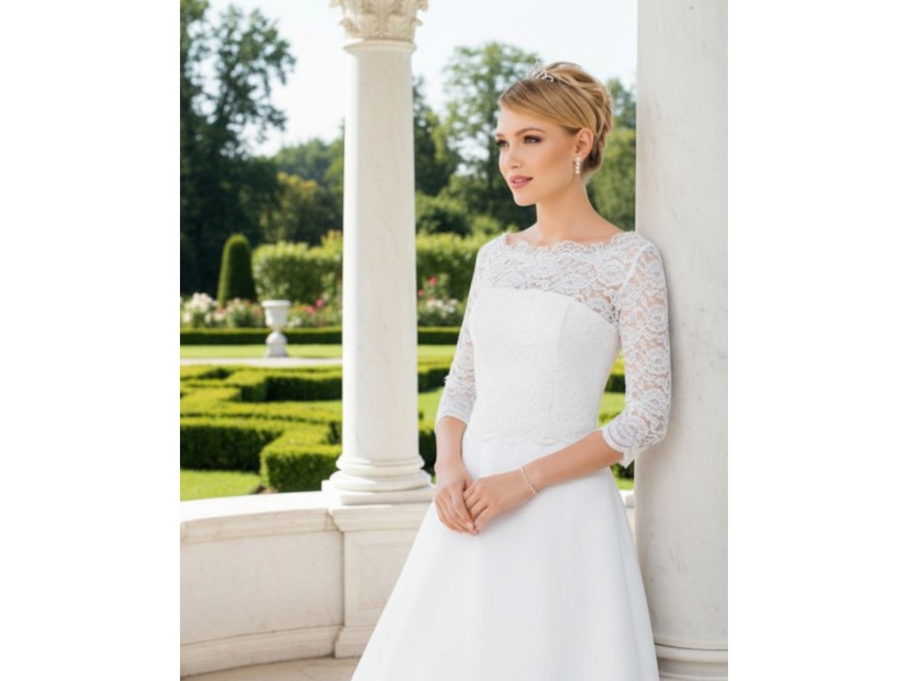 Svadobný čipkový kabátik s hustou čipkou.