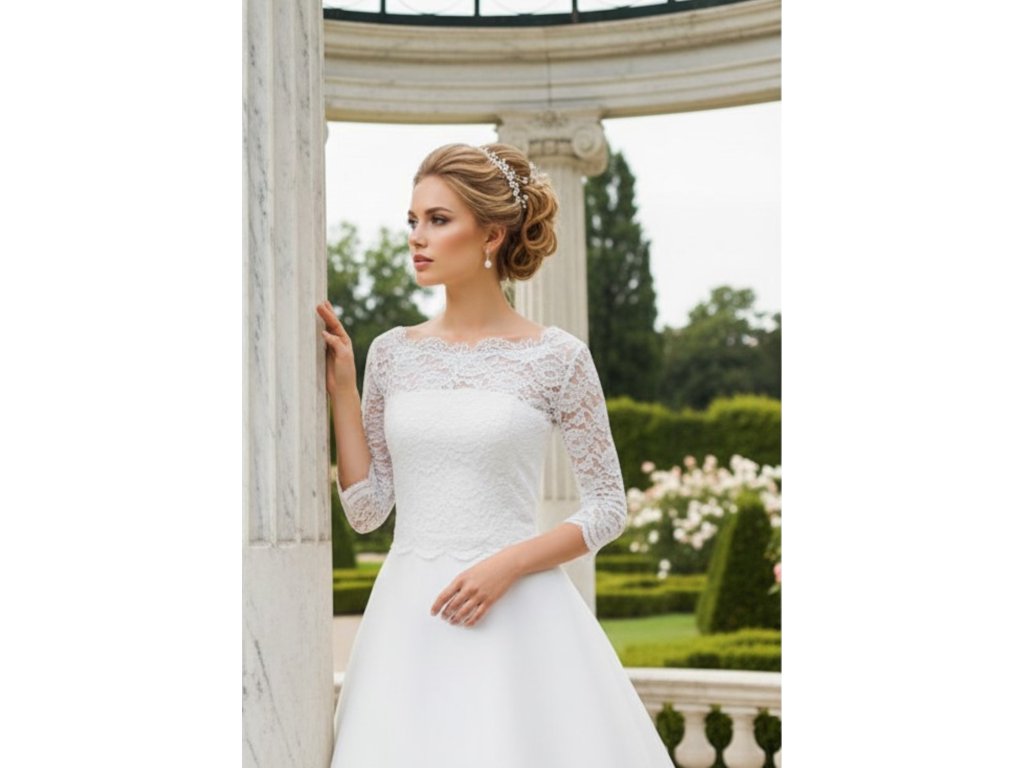 Svadobný čipkový kabátik s hustou čipkou.
