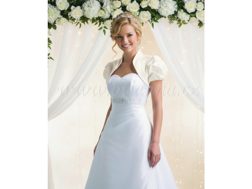 Svadobné bolerko zo syntetického taftu, s naberanými rukávmi.