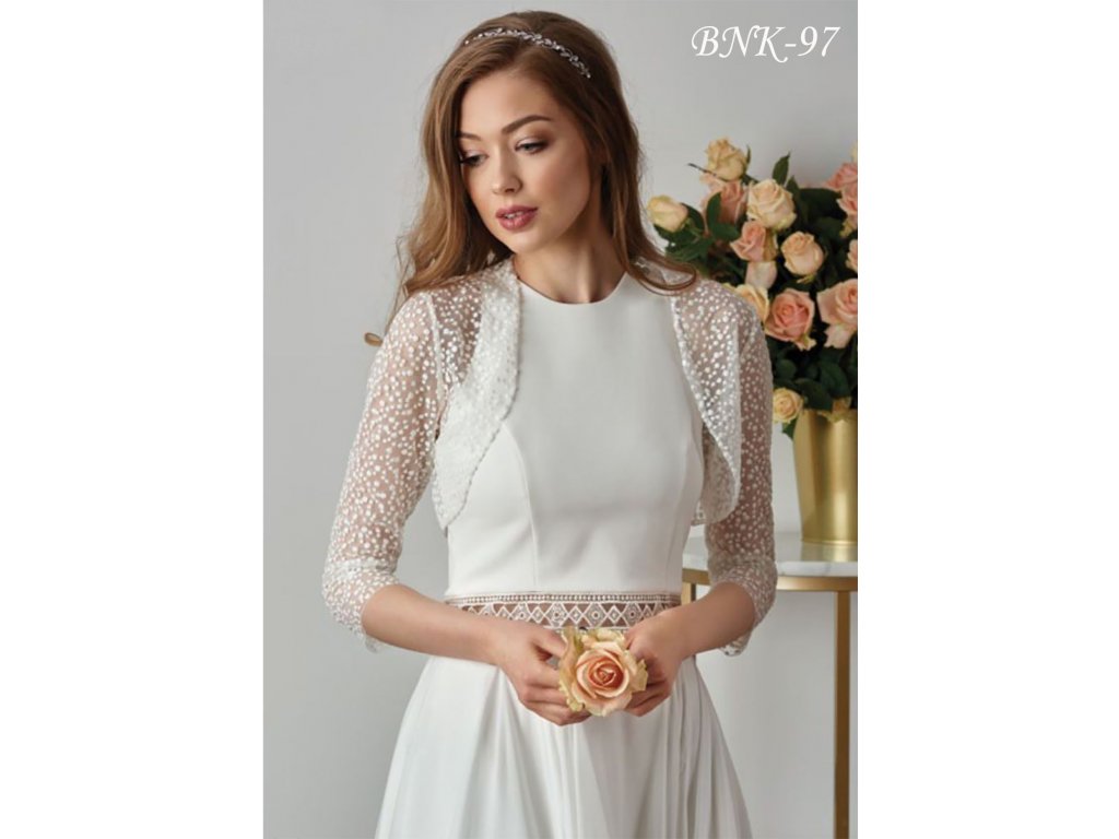Tylové bodkované svadobné bolerko s 3/4 rukávom.