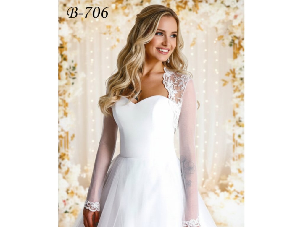 › Svadobné bolerka › Tylové svadobné bolerko lemované čipkou - biele: B-706, veľ. S