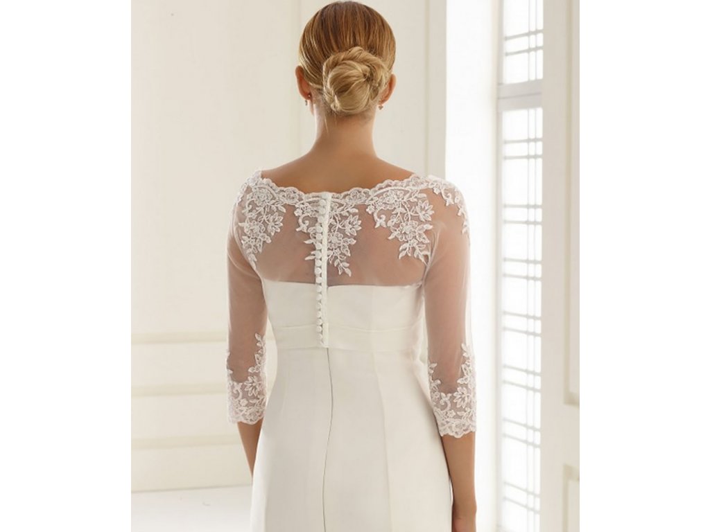 Tylové svadobné bolerko lemované čipkou.