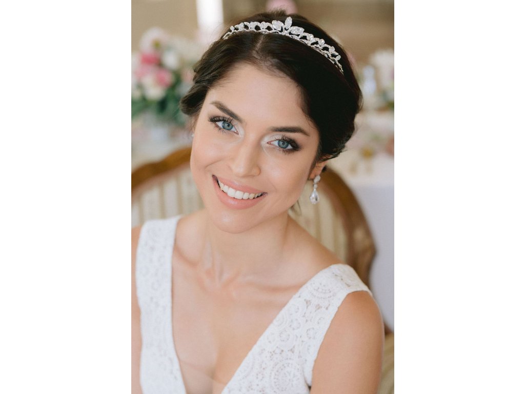 Elegantná svadobná korunka do vlasov, zdobená kubickými zirkónmi.