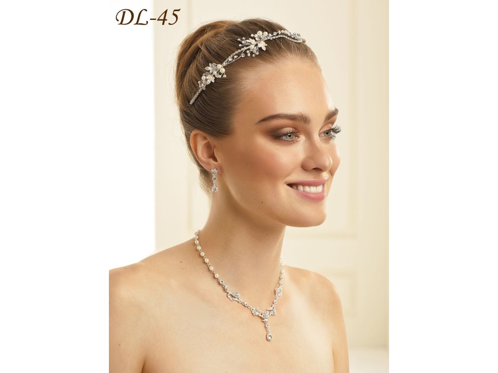 Svadobná čelenka do vlasov, zdobená štrasom a perličkami.