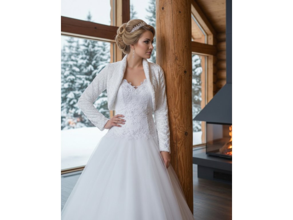 › Svadobné kožúšky a svetre › Aksamitové bolerko s dlhým rukávom - biele: BF-119