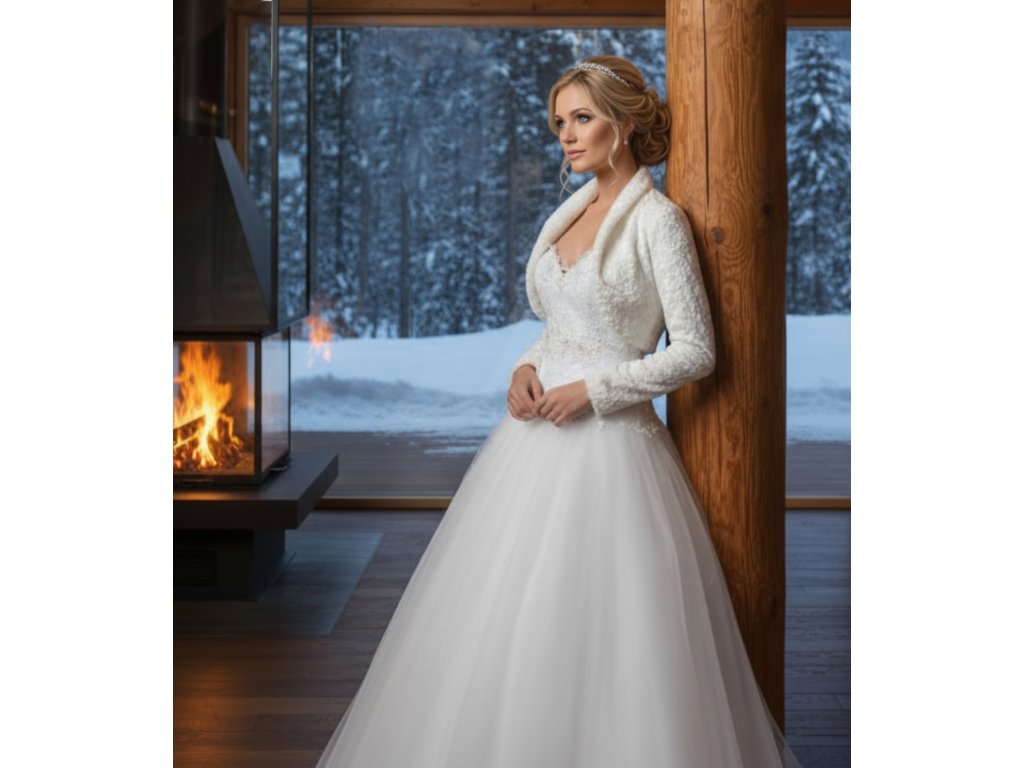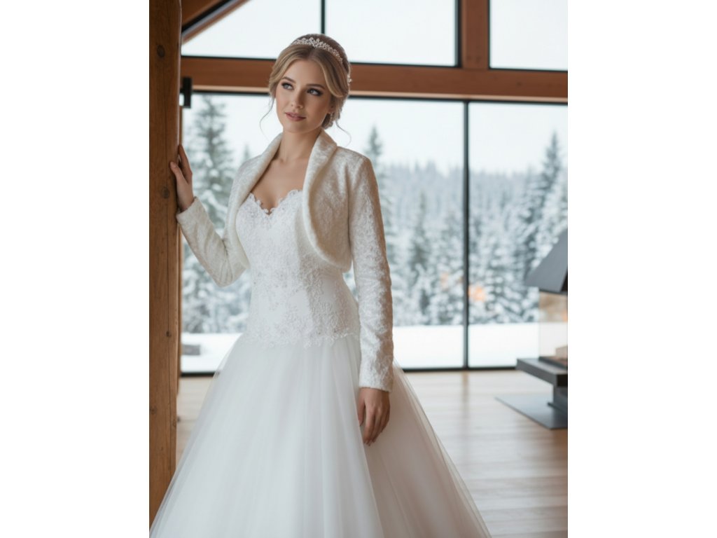 Aksamitové bolerko s dlhým rukávom - ivory: BF-119
