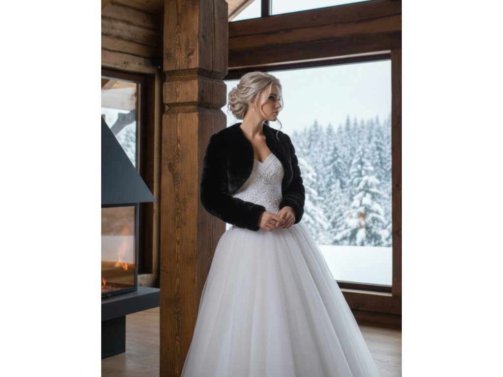 › Svadobné kožúšky a svetre › Čierne kožušinové bolerko: BF-14