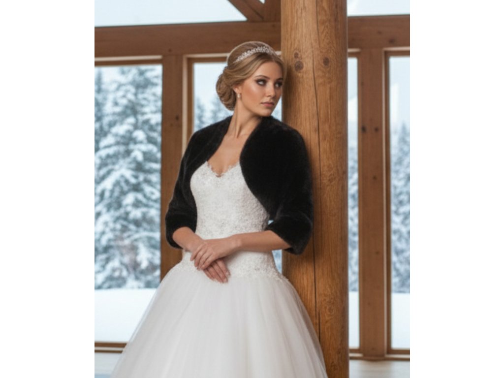 › Svadobné kožúšky a svetre › Čierne plyšové bolerko s 3/4 rukávom: BF-45