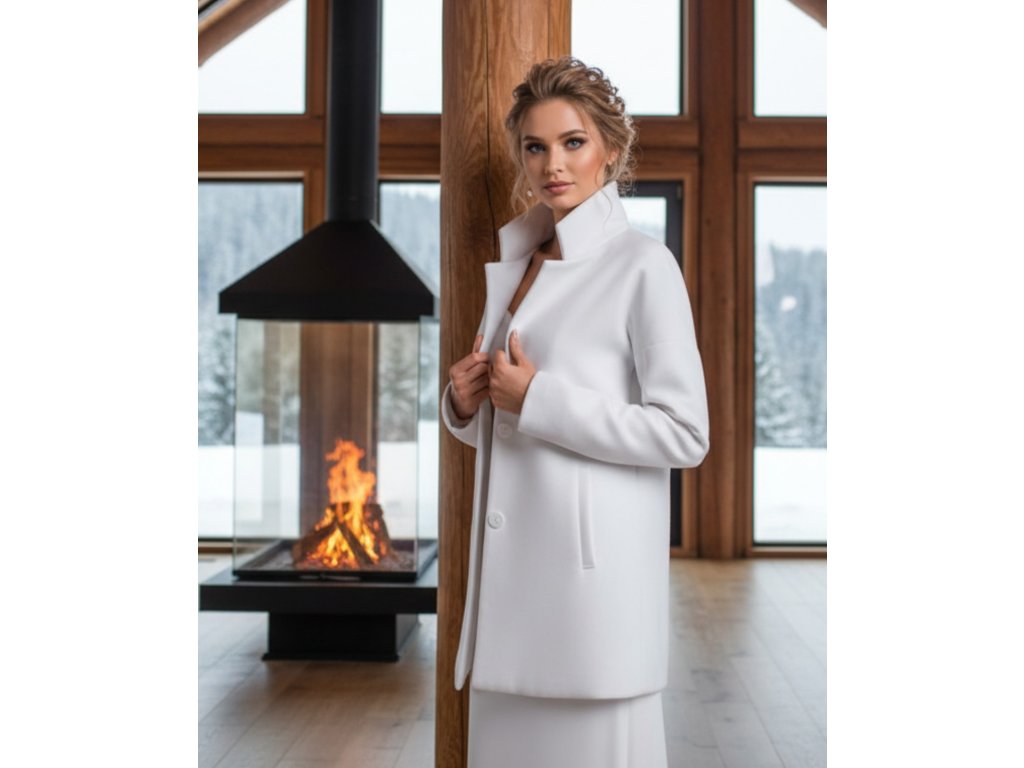 › Svadobné kožúšky a svetre › Dámsky flaušový svadobný kabát - biely: BF-206