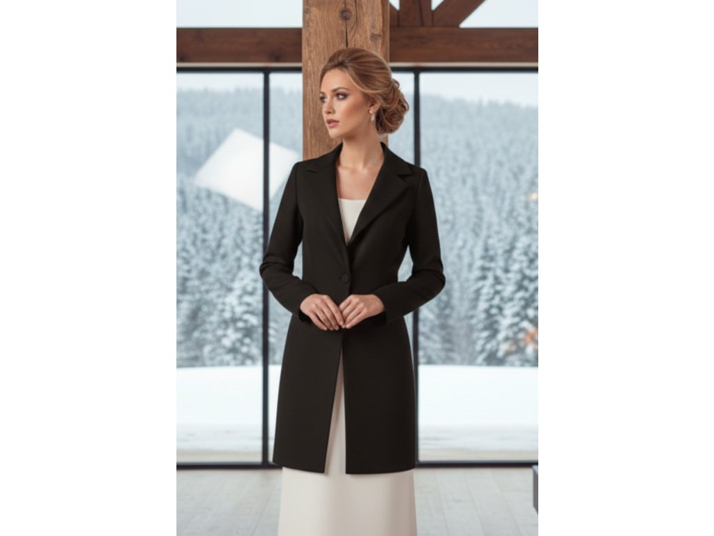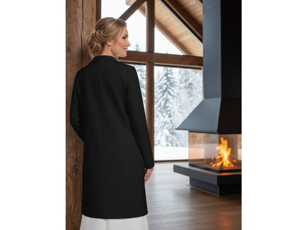 › Svadobné kožúšky a svetre › Flaušový spoločenský kabát - čierny: BF-237