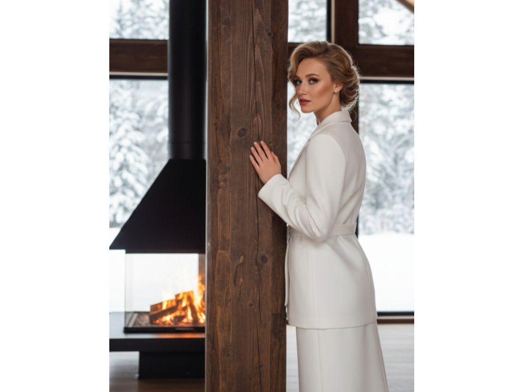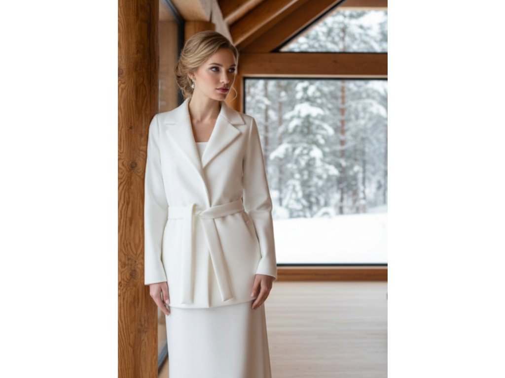 Flaušový svadobný kabát s opaskom.