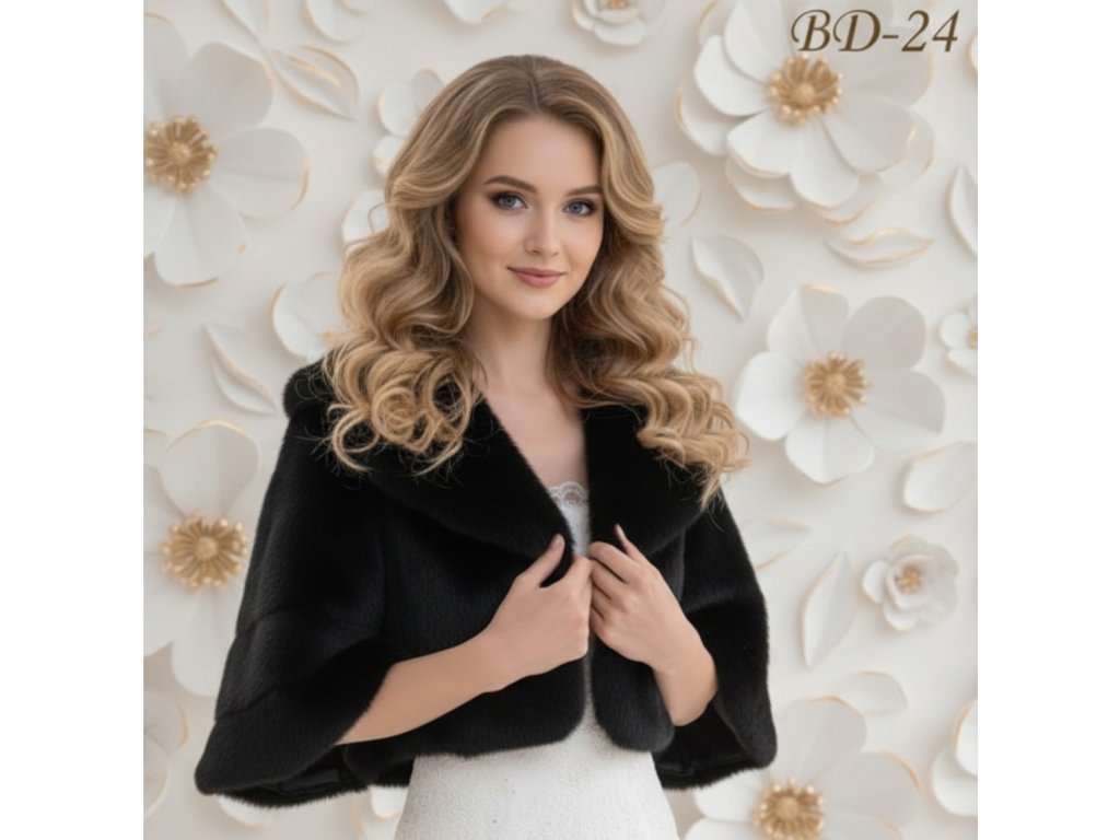 › Svadobné kožúšky a svetre › Kožušinové bolerko s širokými rukávmi - čierne: BD-24