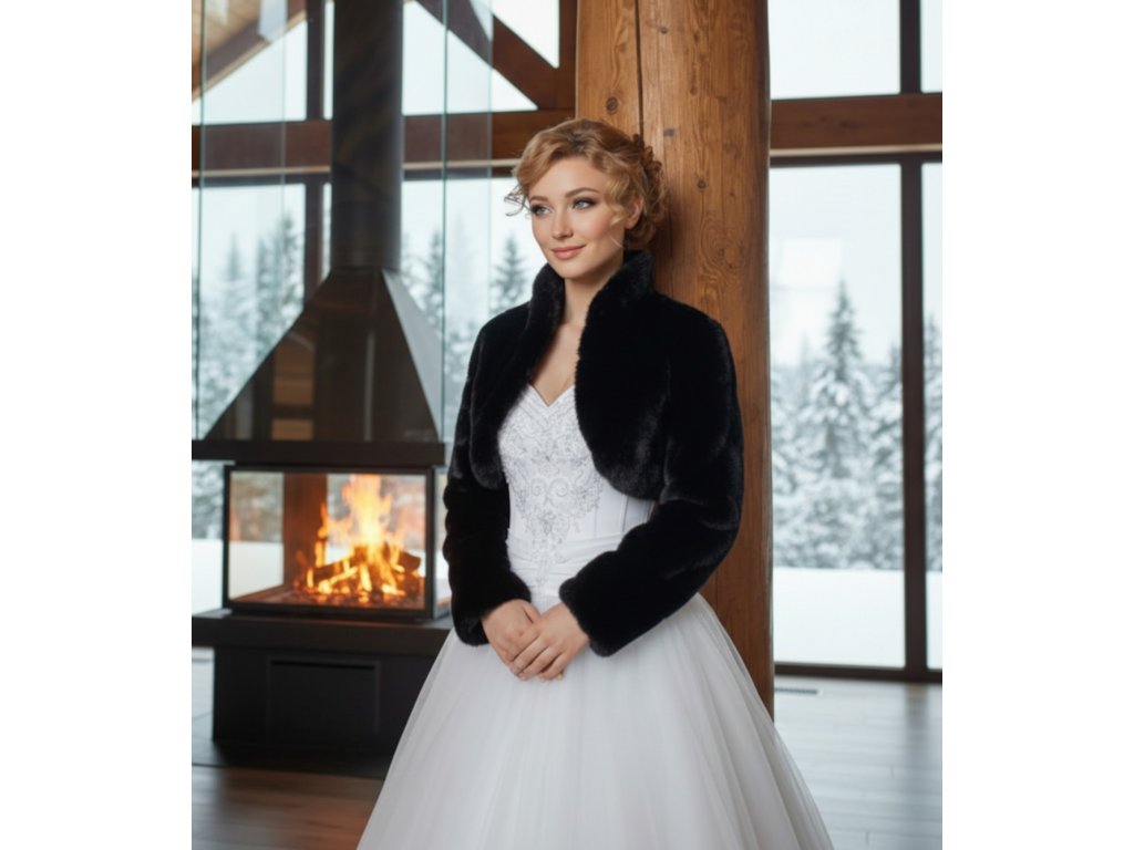 › Svadobné kožúšky a svetre › Kožušinové bolerko s vyšším golierom - čierne: BF-26