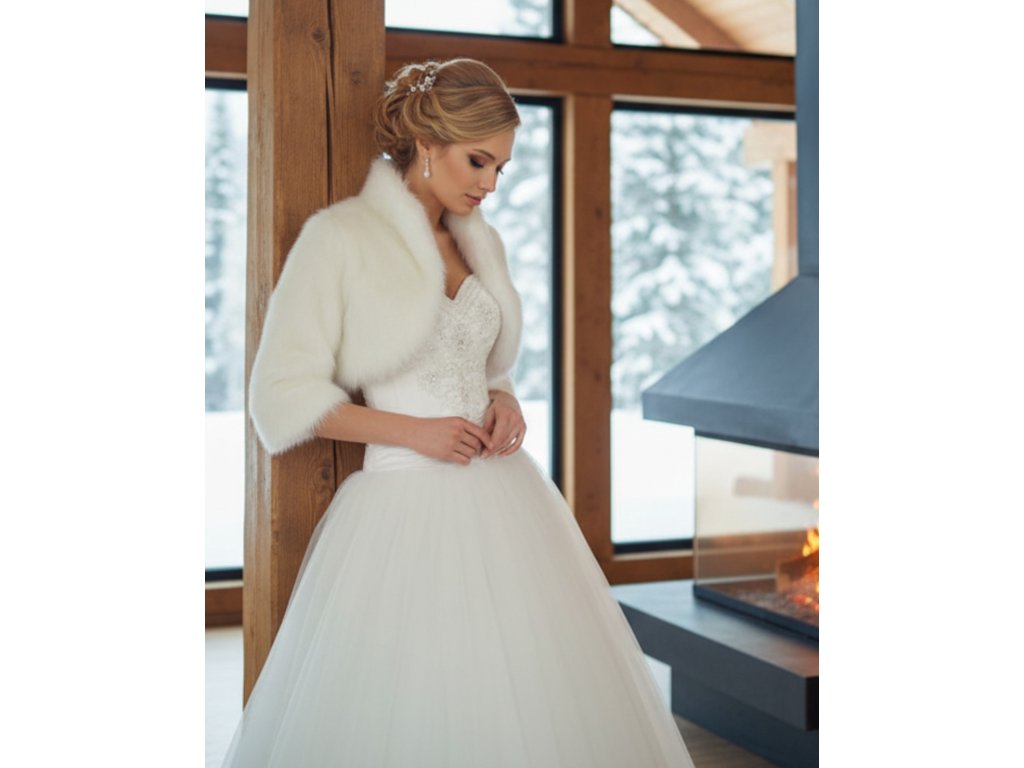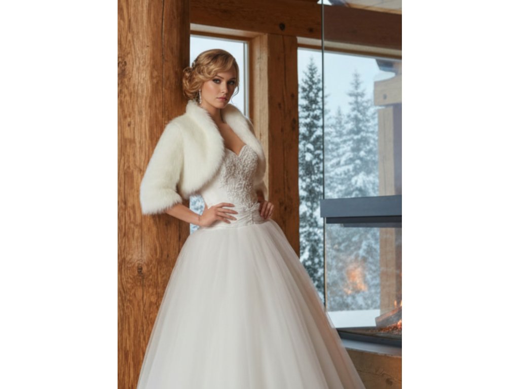 › Svadobné kožúšky a svetre › Kožušinové svadobné bolerko s 3/4 rukávom - ivory: BF-57