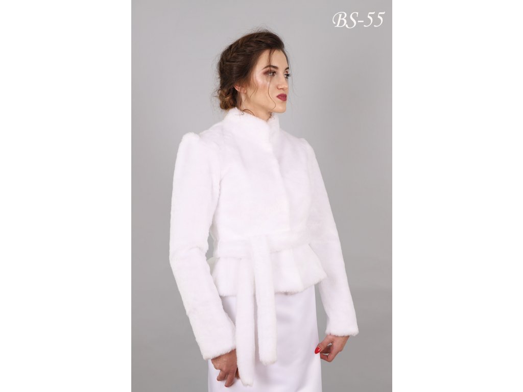 Kožušinový svadobný kabátik s opaskom - biely: BS-55