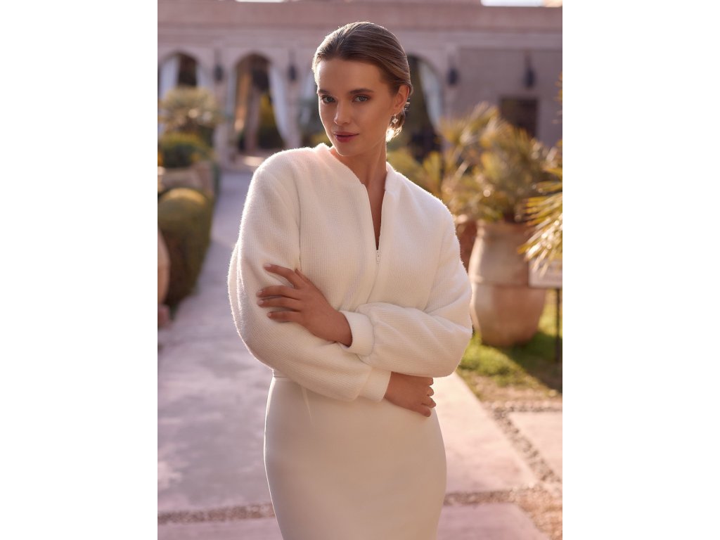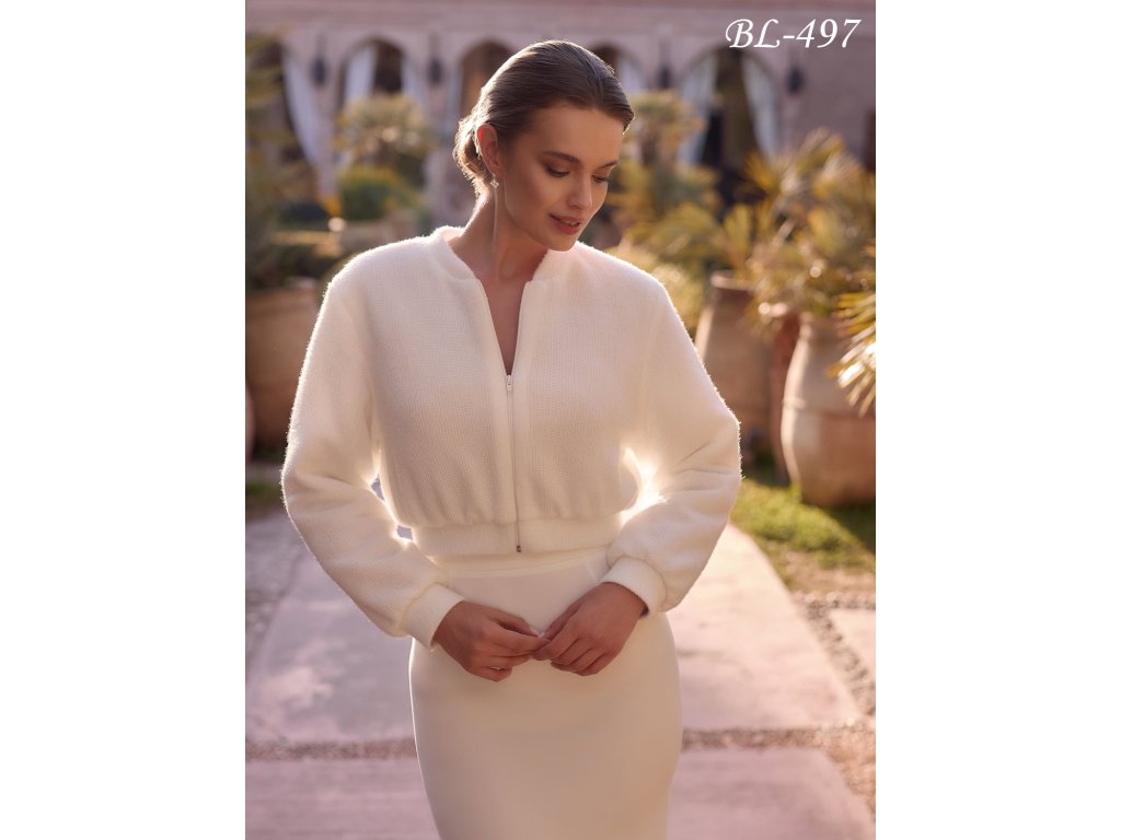 Krátky svadobný svetrík s kašmírovým efektom.