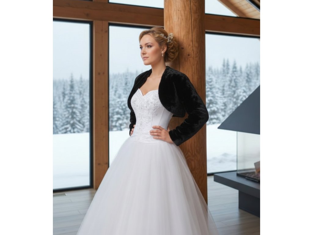 › Svadobné kožúšky a svetre › Plyšové bolerko s dlhým rukávom - čierne: BF-18