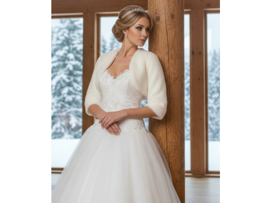 Plyšové svadobné bolerko s 3/4 rukávom.
