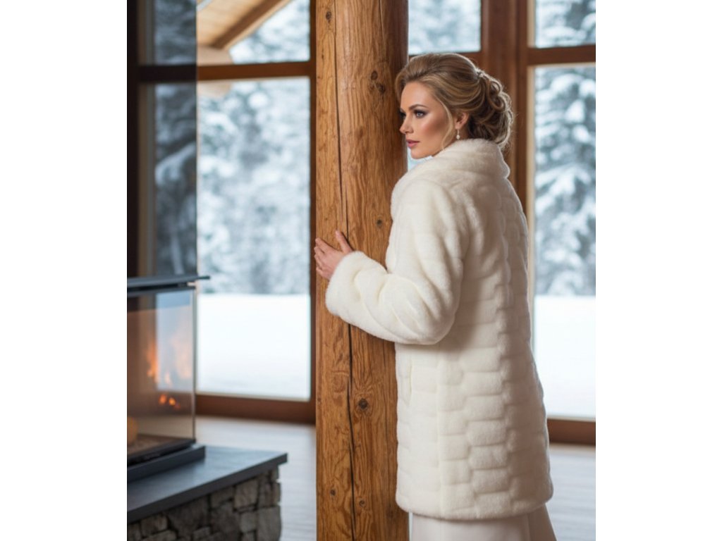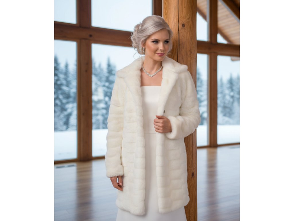 Prešívaný kožušinový svadobný kabát.
