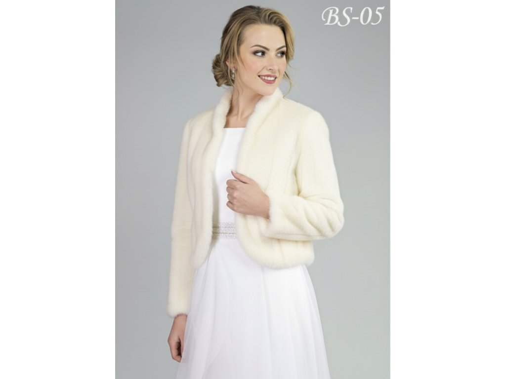Prešívaný zimný svadobný kožúšok z umelej kožušiny.