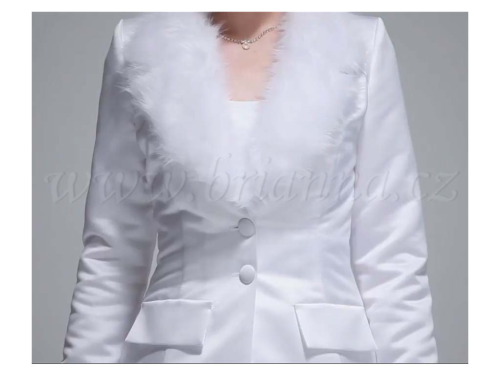 › Svadobné kožúšky a svetre › Saténový svadobný kabát - biely: B-608, veľ. S