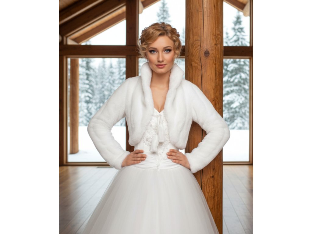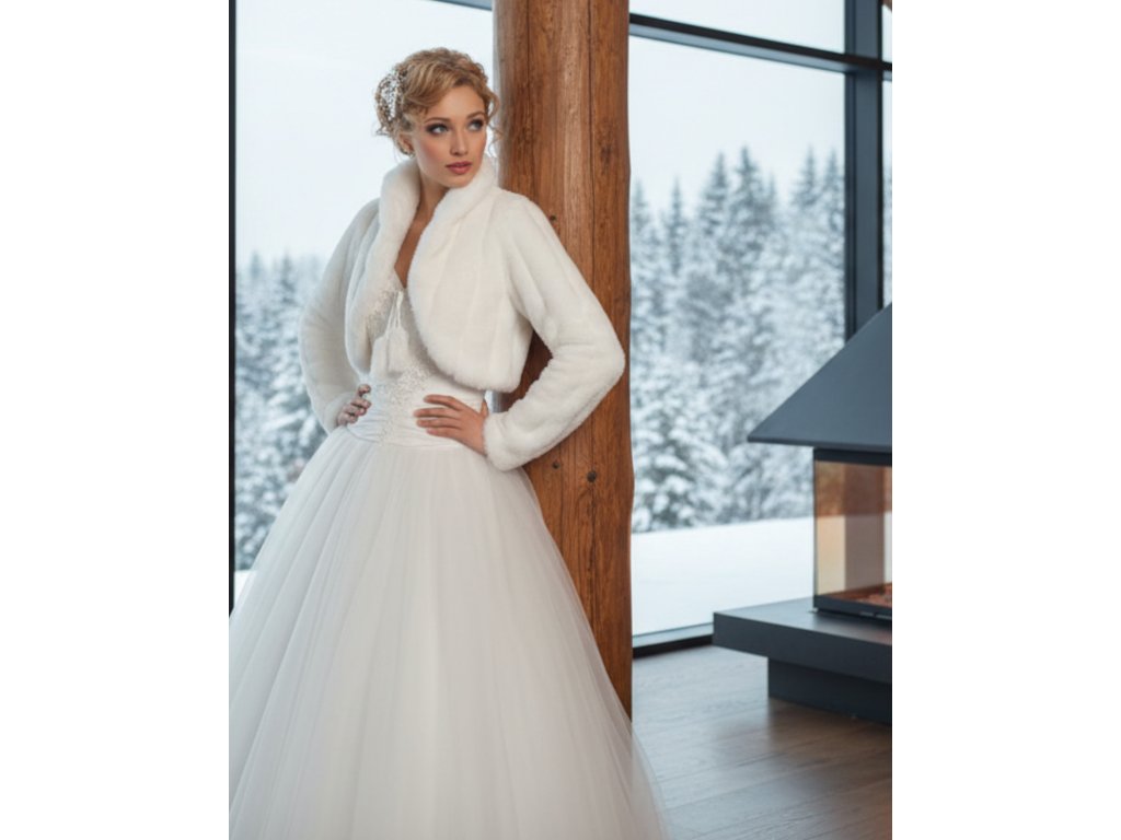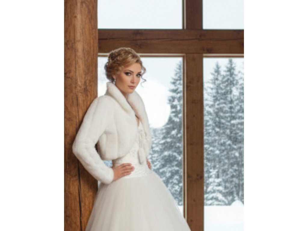 › Svadobné kožúšky a svetre › Svadobný kožušinový kabátik na zaväzovanie - biely: BF-56