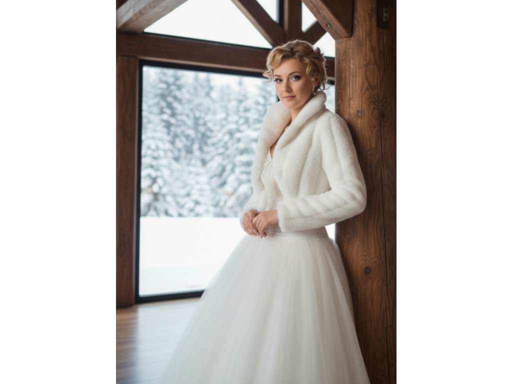 Svadobný kožušinový kabátik na zaväzovanie.