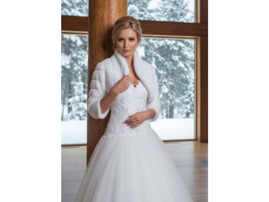 › Svadobné kožúšky a svetre › Svadobný kožúšok s 3/4 rukávom - biely: BF-88
