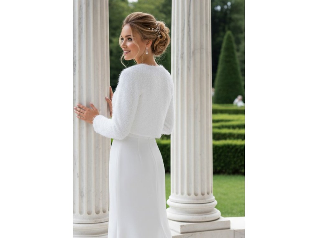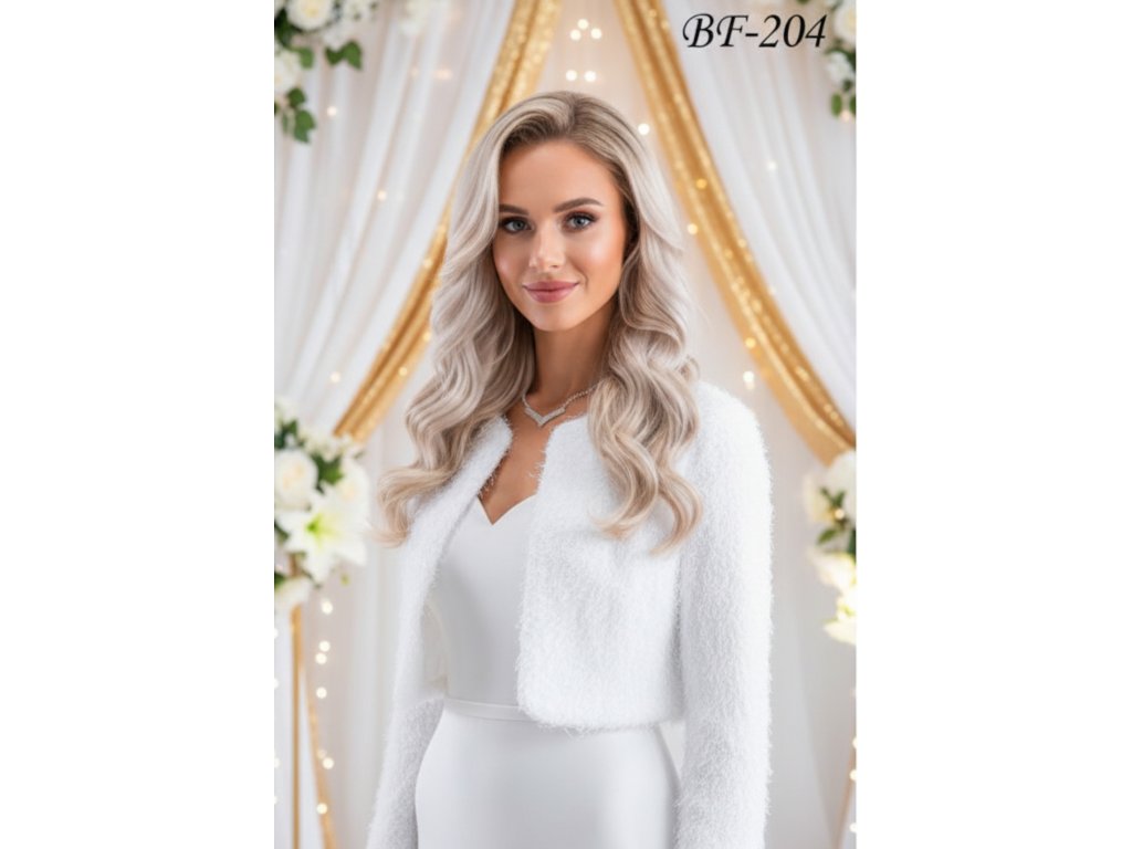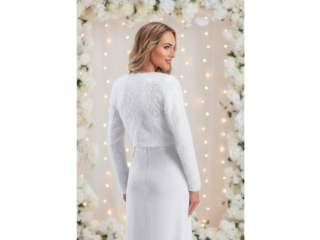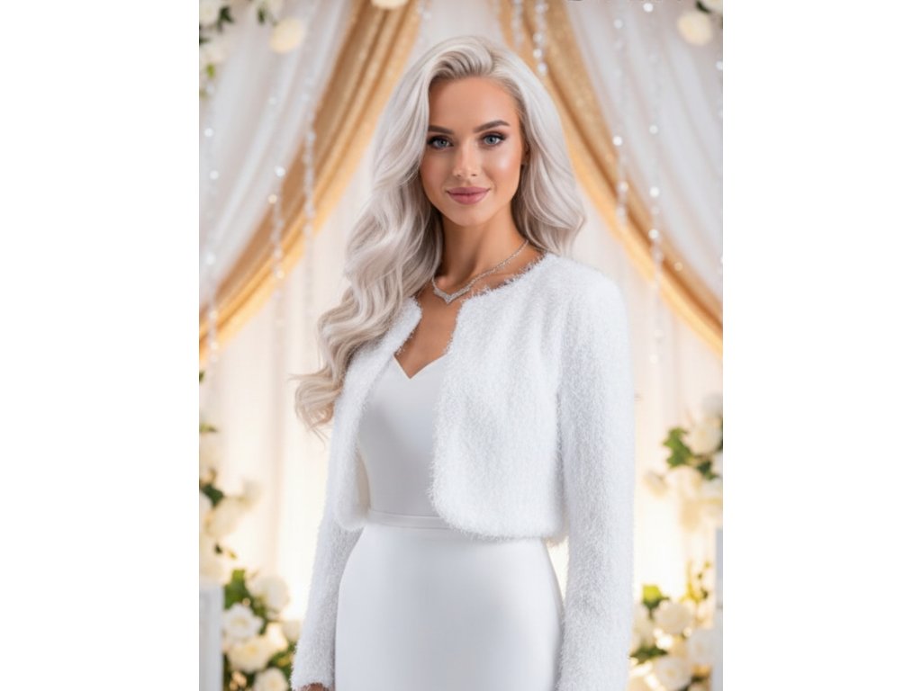 › Svadobné kožúšky a svetre › Velúrové svadobné bolerko - biele: BF-204, veľ. 6XL