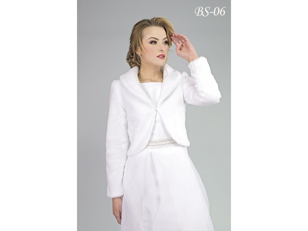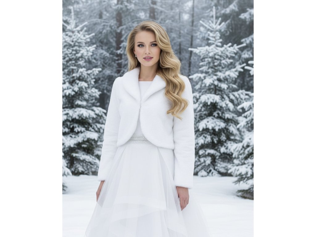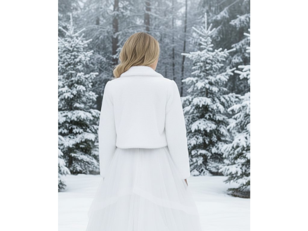 › Svadobné kožúšky a svetre › Zimný plyšový svadobný kabátik - biely: BS-06