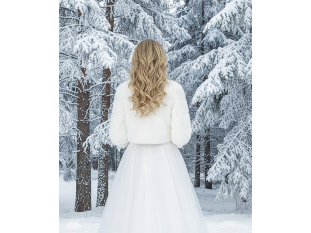 › Svadobné kožúšky a svetre › Zimný prešívaný svadobný kabátik - biely: BS-03