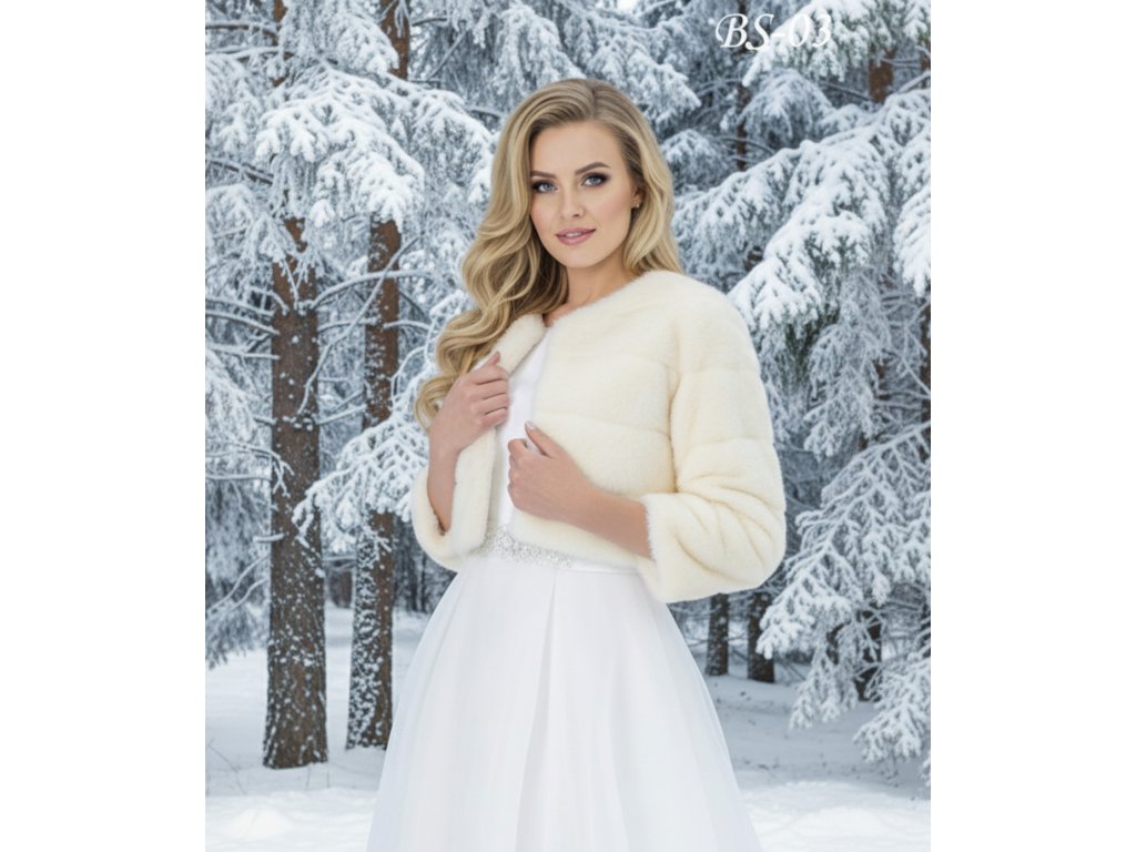 Zimný prešívaný svadobný kabátik - ecru: BS-03