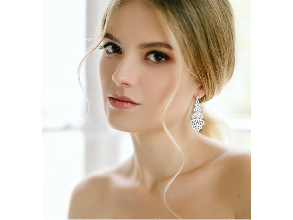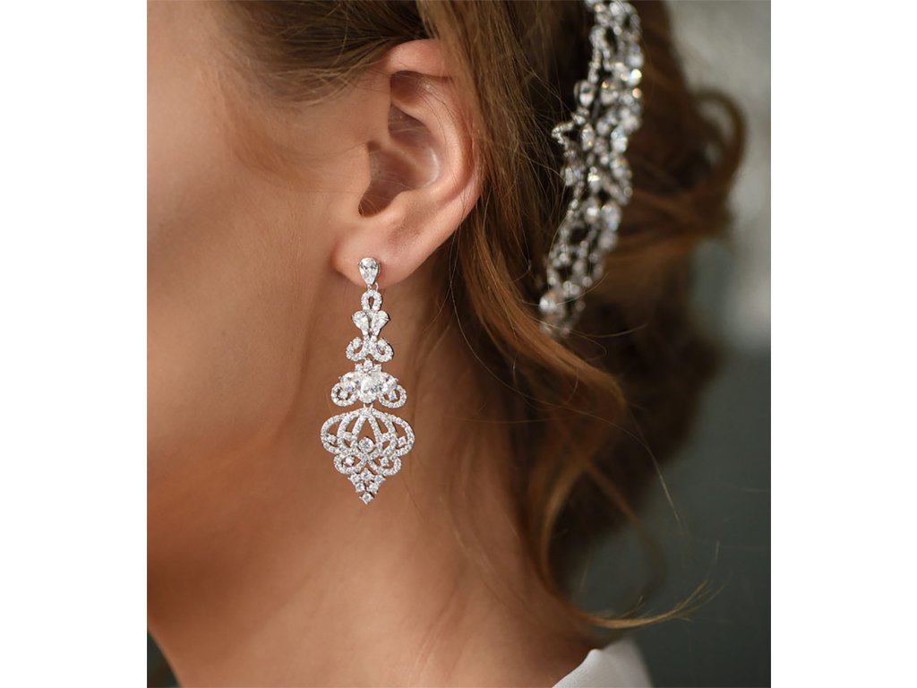Jemné svadobné náušnice zdobené kryštálmi a kubickými zirkónmi.