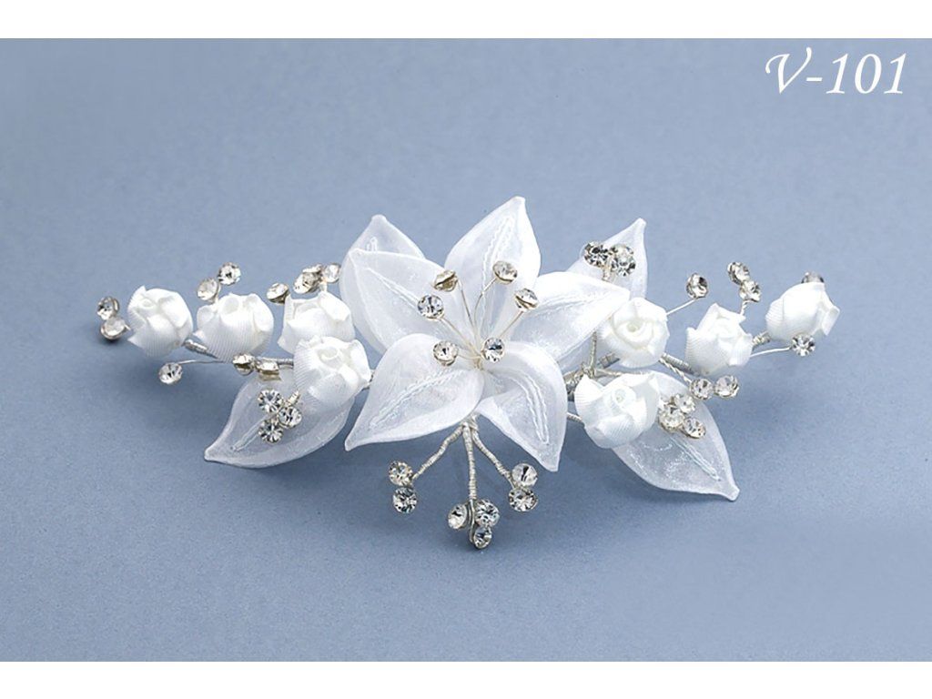 Svadobná kvetina do vlasov ľalia s kryštálmi V-101