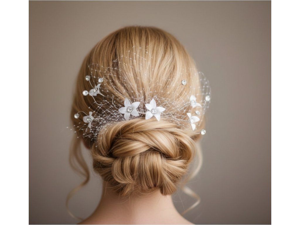 Svadobná ozdoba do vlasov - drobné kvety so sieťkou V-190