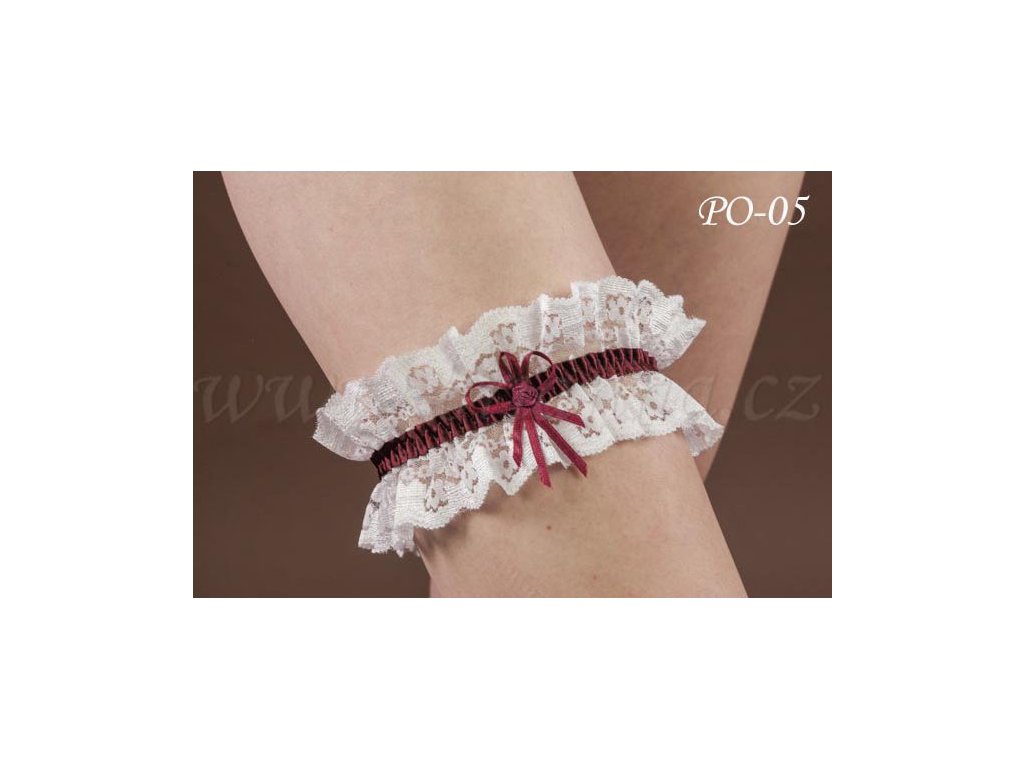 Svadobný podväzok s bordovou mašľou PO-05