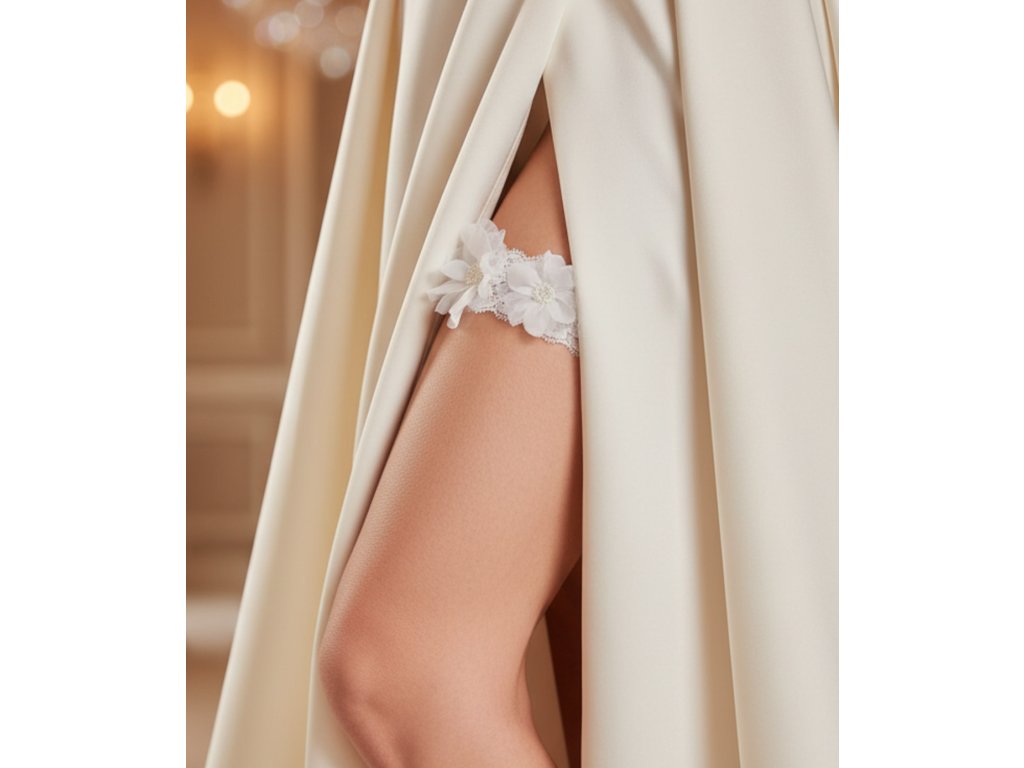 Svadobný podväzok s veľkými kvetmi.