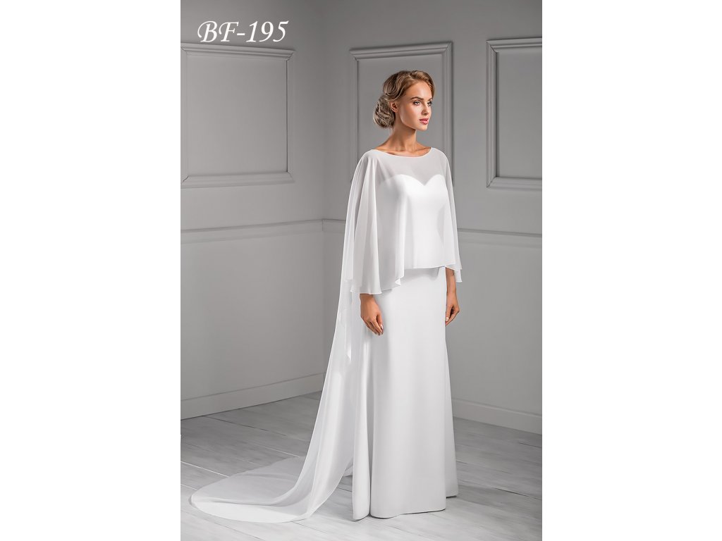 Dlhá svadobná pelerína z mušelínu - biela: BF-195